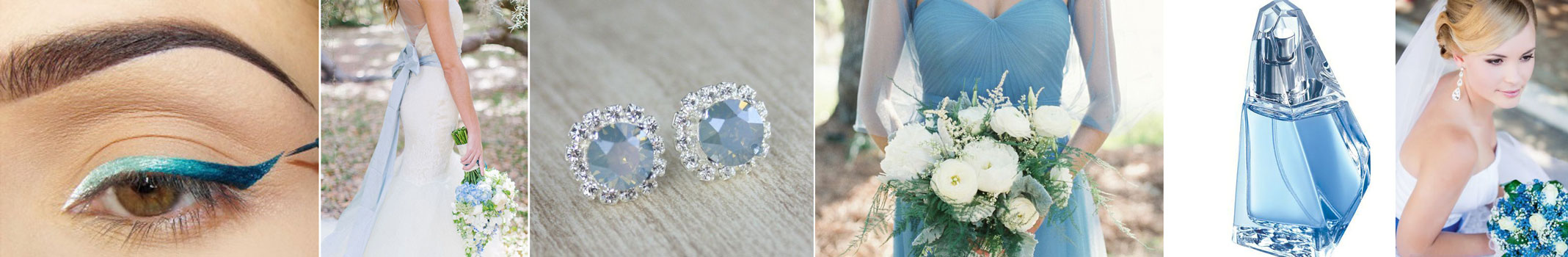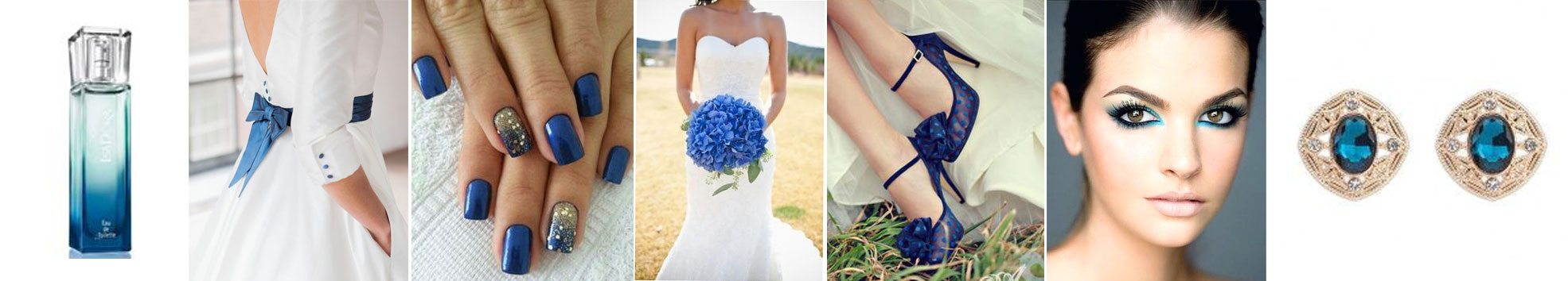 Niebieski będzie świetnym dodatkiem do ślubnej bieli. Doskonale połączy się ze srebrnym lub złotym połyskiem na sukni i biżuterii. Wybierając intensywne odcienie niebieskiego, pamiętajmy, że jest to mocny akcent i nie można z nim przesadzić. Wiązanka, szarfa na sukni i buty w tym kolorze w zupełności wystarczą. Z makijażem w tym przypadku należy udać się do dobrej makijażystki, ponieważ kolory niebieskie są ciężkie w aplikacji i bardzo łatwo można zrobić nimi krzywdę w wyglądzie i znacznie przesadzić. Bezpiecznym rozwiązaniem będzie niebieska kreska na górnej powiece i cieliste matowe cienie oraz beżowe usta.