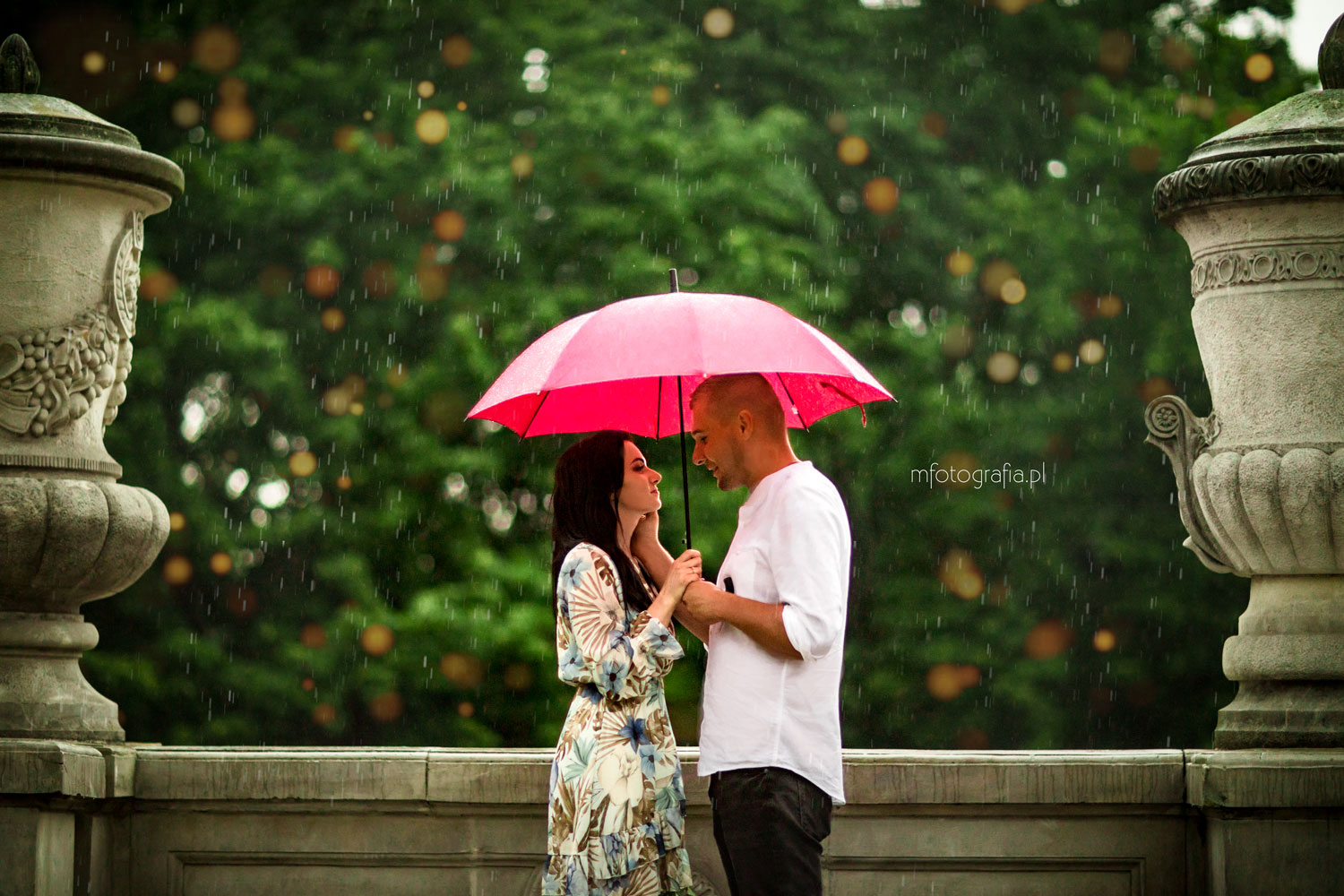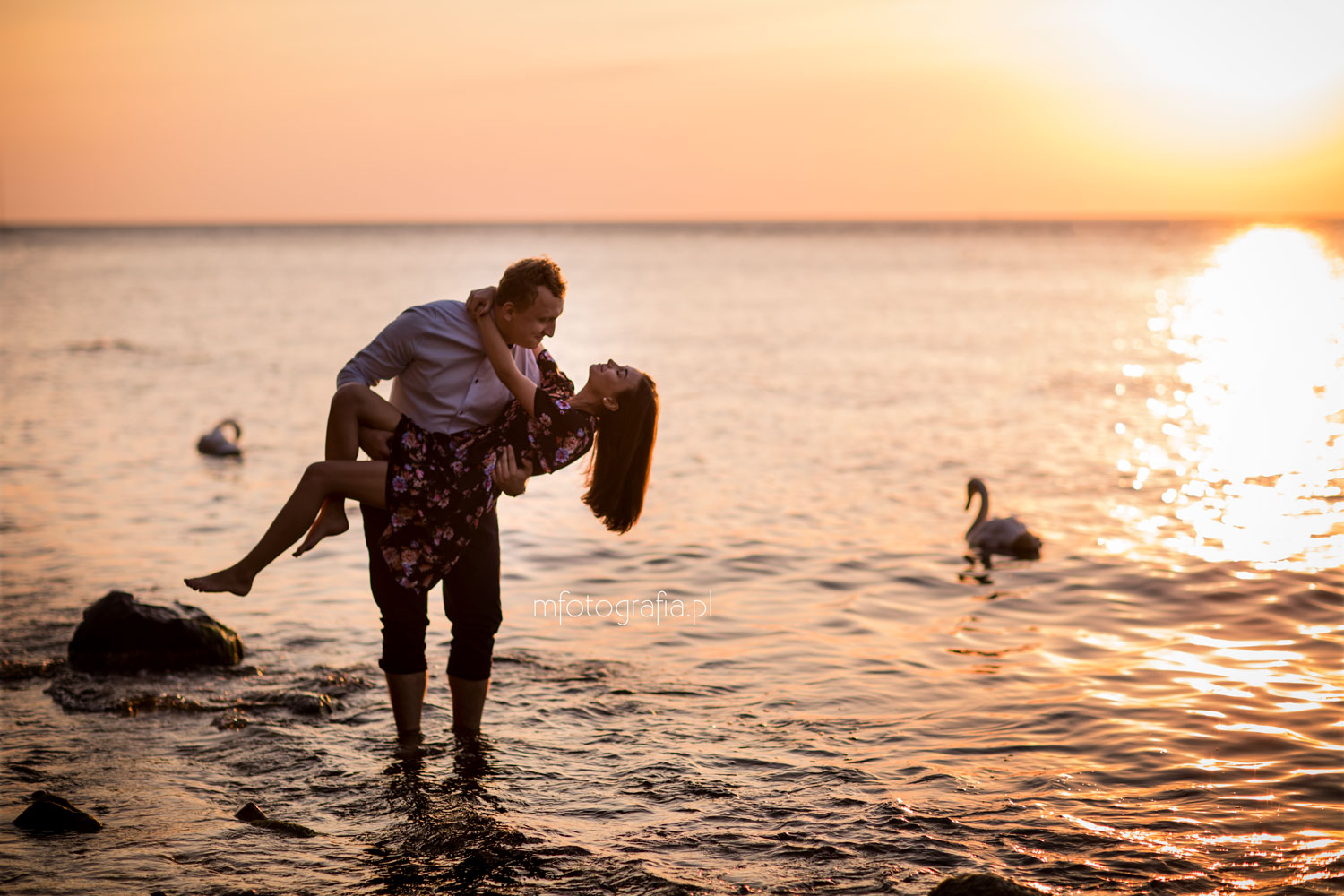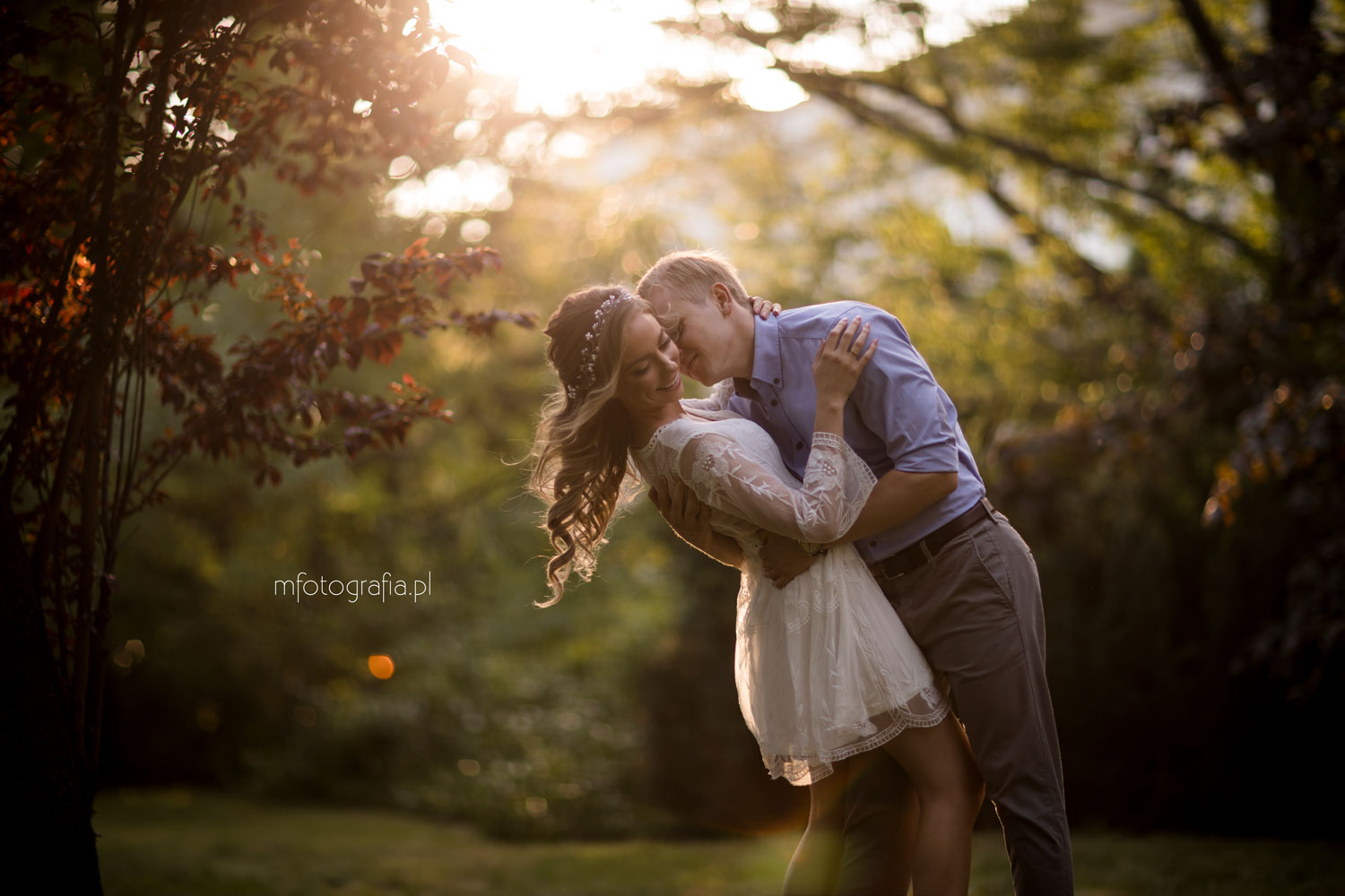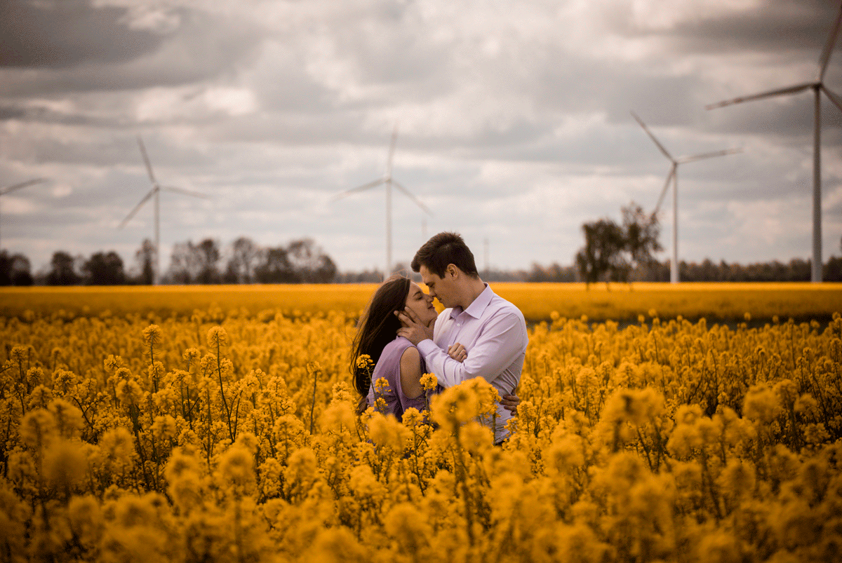 Światło w fotografii to najważniejszy aspekt. Buduje ono klimat zdjęć i wprowadza niepowtarzalną atmosferę. Ja zawsze wybieram na sesje zaręczynowe czas tak zwanej złotej godziny. Słońce przybiera wtedy ciepłą złotą barwę, która robi magię na fotografiach. Mamy do wyboru dwie takie pory w ciągu dnia – wschód i zachód słońca. O każdej porze roku wygląda to oczywiście nieco inaczej.